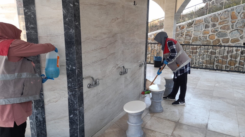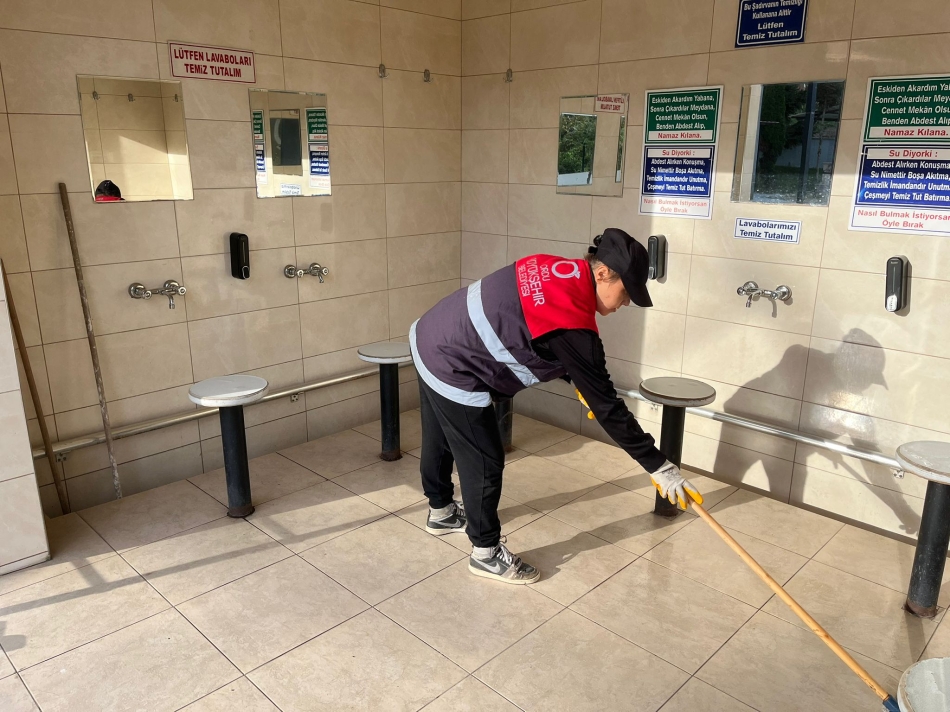 Büyükşehir Belediyesi, vatandaşların ibadetlerini hijyenik bir ortamda yerine getirebilmeleri amacıyla il genelindeki camilerde temizlik çalışmalarını sürdürüyor. Sabahın erken saatlerine çalışmalarına başlayan ekipler, belirli program dahilinde özverili bir çalışma yürütüyor. Halılar, camlar, ayakkabılıklar, minber, mihrap, müezzin mahfili gibi cami içi alanlarda silip süpürme işlemleri yapan ekipler, dış mekanda ise abdesthaneler ve WC’leri yıkayarak pırıl pırıl yapıyor.