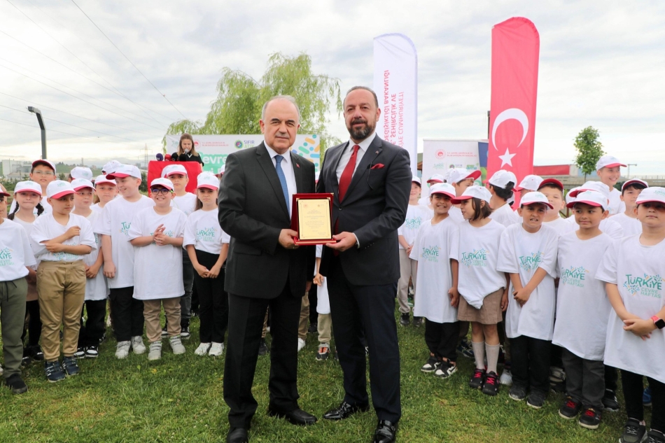 İlimizde plastik atıkların geri kazanılması amacıyla bu yıl 1,5 ton plastik atığı ayrı toplanarak çevre kirliliğini önlemeye ve kaynakların verimli kullanılması konusunda büyük bir katkı sunan Şehit Ali Sami Odabaşı İlkokulu Müdürü Ceyhan Yücel ve öğrencilere plaket ve hediyeler Vali Muammer Erol ve diğer protokol üyeleri tarafından verildi.