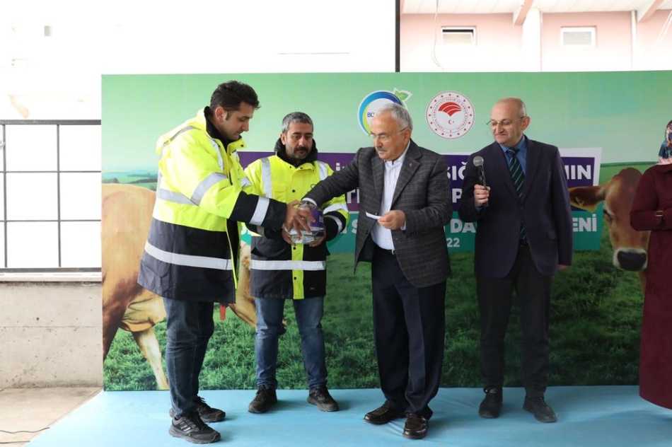 Konuşmaların ardından kurayla belirlenen çiftçilere sığırları dağıtıldı.