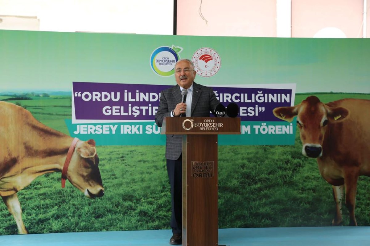 İl Tarım ve Orman Müdürü Kemal Yılmaz ise “Ordu gerçekten önemli günlerden birini yaşıyor. Daha önceki yıllarda ilimizde bir şekilde çalışılan ancak üzerinde yeterince durulmadığı için vazgeçilen ancak daha sonra değeri anlaşılan jersey ırkının bugün büyükşehir bünyesinde alınan 300 hayvanın dağıtım töreni için buradayız. Bu projenin meyvelerini önümüzdeki günlerde daha net göreceğiz. Az yem ile kaliteli süt veren hayvanlar. Sayın başkanımıza verdiği destekler nedeniyle teşekkürlerimi sunuyorum” şeklinde konuştu.