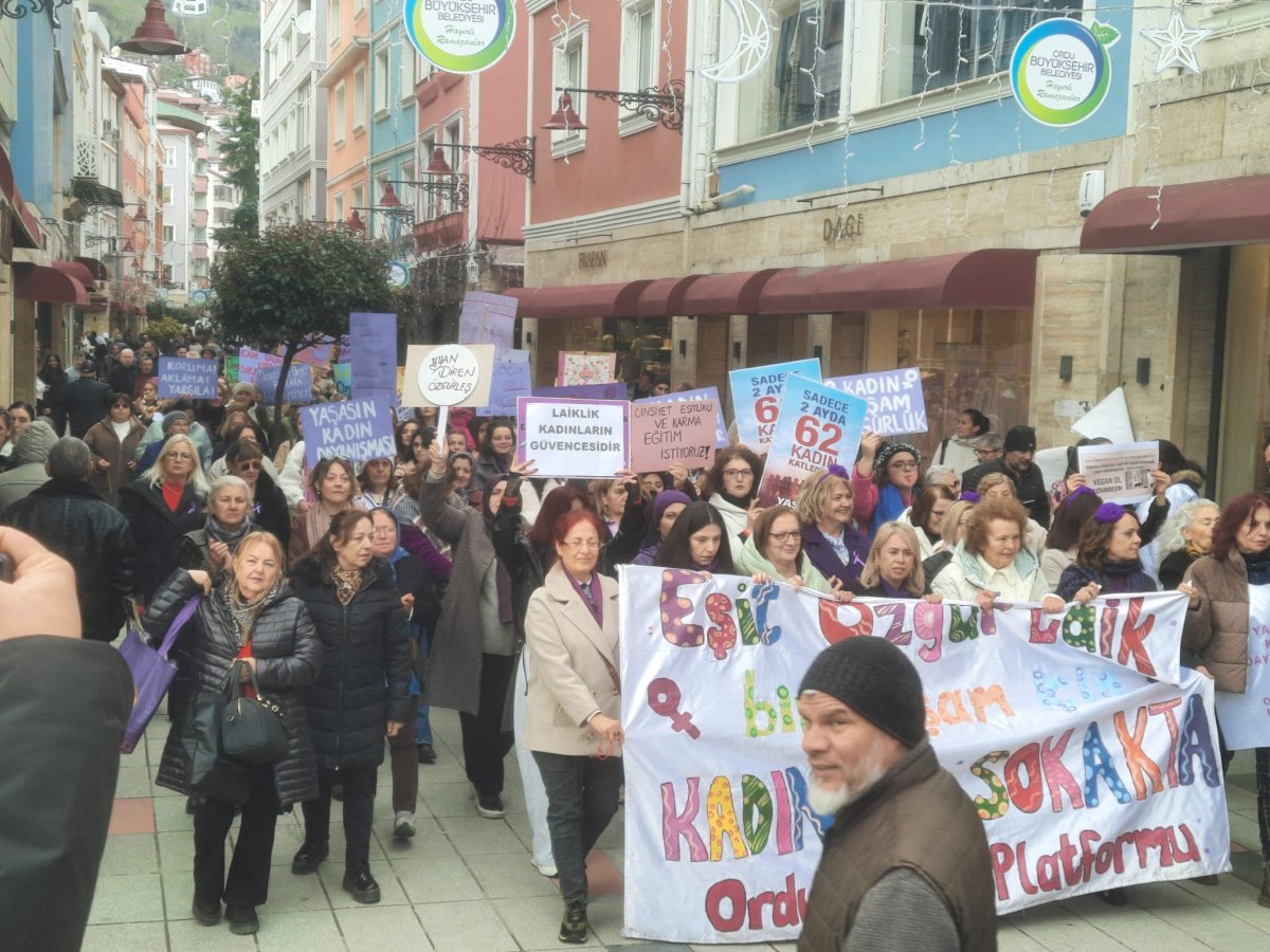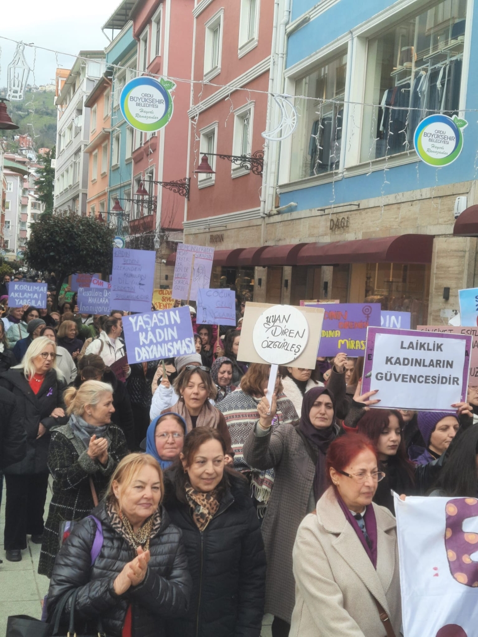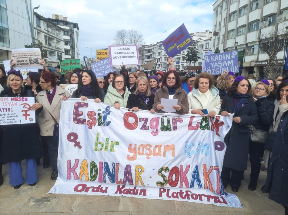 Altınordu’da Ordu Kadın Platformu tarafından "Yoksulluğa, şiddete, güvencesizliğe karşı; barış, laiklik ve özgürlük mücadelesini büyütüyoruz" 8 Mart yürüyüşü gerçekleştirildi. 19 Eylül Ortaokulu yanında toplanan kadınlar "Eşitlik, özgürlük talepli, kadına yönelik şiddet ve cinayetlere karşı" sloganlar atarak Köprübaşı Ceren Özdemir Meydanı'na kadar yürüdüler.