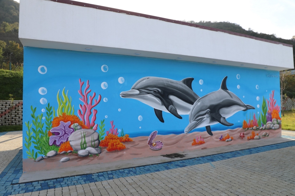 Gülyalı Mavi Dünya Plajı’nda engelli vatandaşlar için özel olarak tasarlanan tesisin dış cephesi, neşeli ve motive edici bir mural çalışmasıyla renklendirildi.