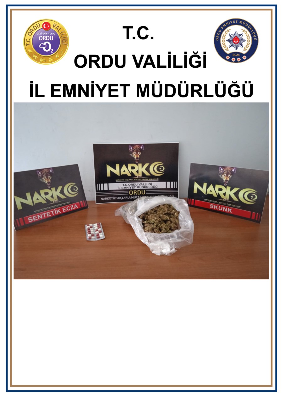 Ordu İl Emniyet Müdürlüğü tarafından 03.04.2023 ile 09.04.2023 tarihleri arasında Narkotik Suçlarla mücadele kapsamında yapılan çalışmalar neticesinde farklı miktar ve adetlerde uyuşturucu maddeler ele geçirildi.
