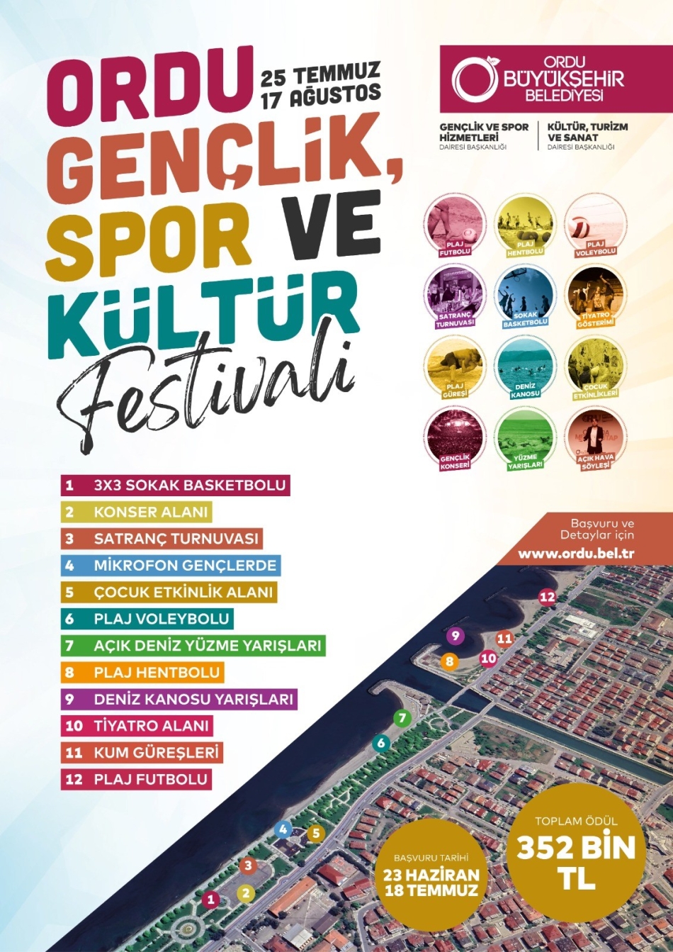 Altınordu ilçesi Tayfun Gürsoy Parkı, Akyazı Sahili ve Fatih Sultan Mehmet Spor Kompleksi’nde gerçekleştirilecek olan festivalde Plaj Futbolu, Plaj Hentbolu, Plaj Voleybolu, 3x3 Sokak Basketbolu, Plaj Güreşi, Deniz Kanosu, Açık Deniz Yüzme Yarışları, Tenis ve Satranç Turnuvalarının yanı sıra Tiyatro Gösterileri, Konserler, Çocuk Oyunları ve Çeşitli Kültür Etkinlikleri yapılacak.