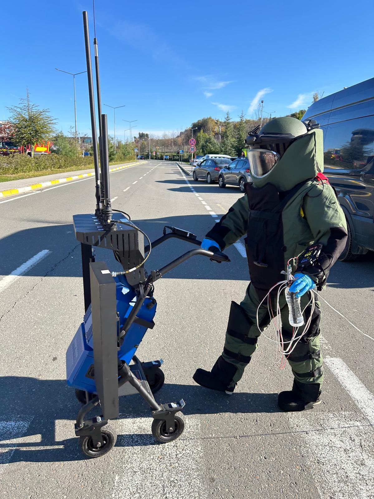 Hazırlanan senaryo gereği, Ordu-Giresun Havalimanı terminal binasının önünde tespit edilen sahipsiz ve şüpheli valiz, özel kıyafetli bomba imha uzmanları tarafından imha edildi.