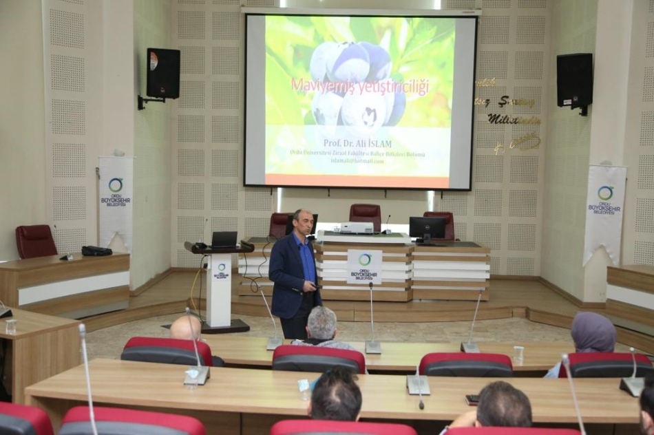 Ürünlerin doğru üretimi ve birim alandan daha fazla gelir elde edilmesini sağlamak amacıyla Büyükşehir Belediyesi Davet Girişimcilik Merkezi’nde Ordu Üniversitesi Ziraat Fakültesi Bahçe Bitkileri Bölümü Öğretim Üyesi Prof. Dr. Ali İslam’ın konuşmacı olarak katıldığı “Mavi Yemiş Yetiştiriciliği Eğitim Semineri” düzenlendi.