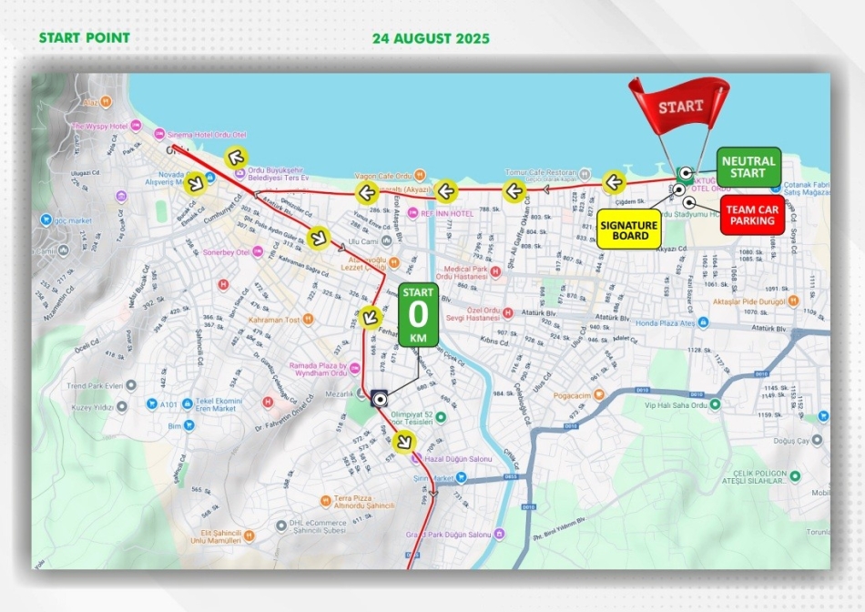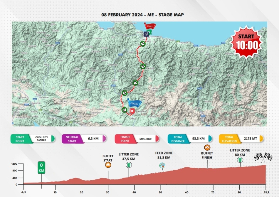 Durugöl Tabiaat Parkı Mevkiinden hareketle başlayacak yarışlar sahil yolunu takiple Büyükşehir Belediyesi Kavşağından dönerek İran Yolu Kavşağından Ulubey İstikametine devam edecek olup, Mesudiye Dereyolu Kavşağı (Çavuşoğlu Boğazı)’ndan Mesudiye İlçesi Topçam Kavşağına kadar devam edecek.