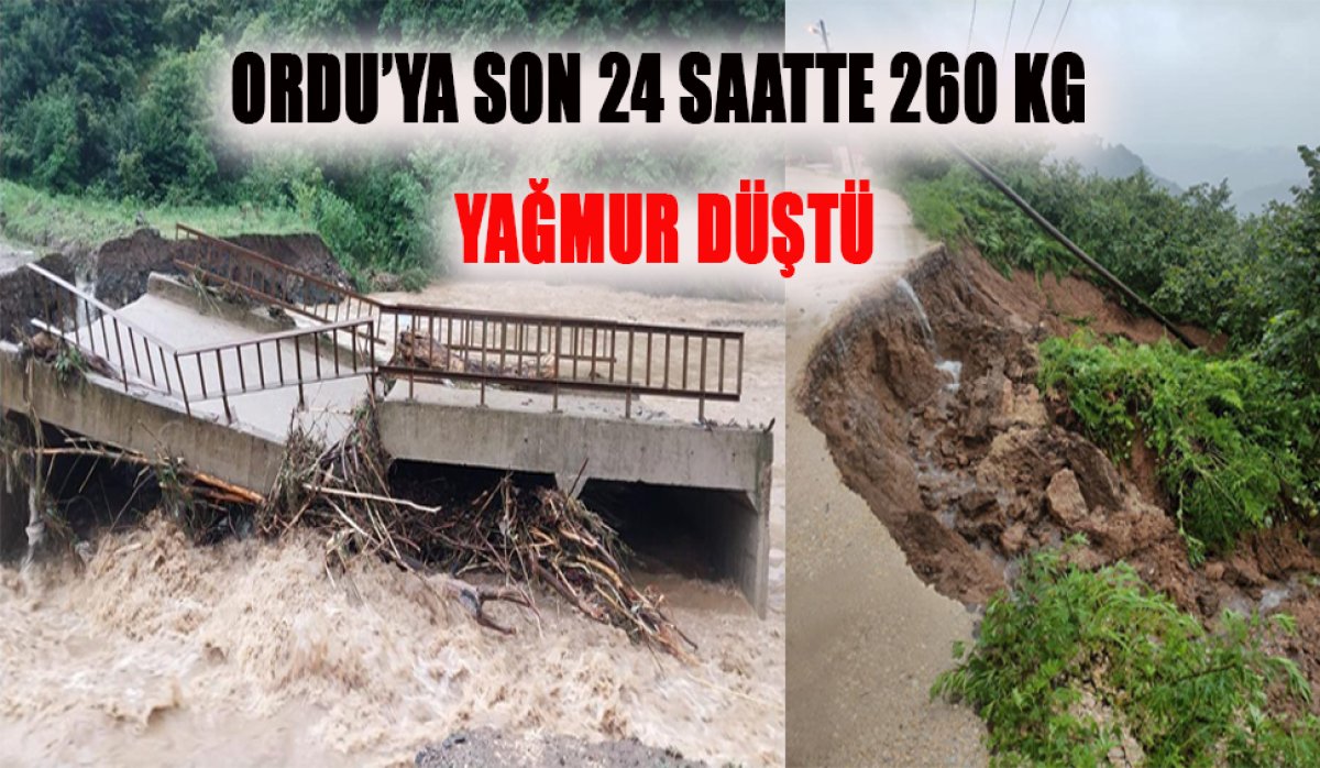 Ordu’da dün akşam saatlerinde başlayan şiddetli yağışlar sonrası son 24 saatte metrekareye 260 kg yağmur düştü.