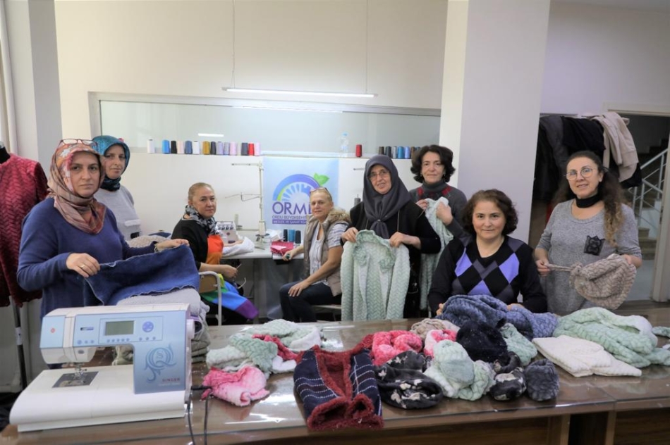 Ordulu kadınlar depremzedeler için seferber oldu. Ordu Büyükşehir Belediyesi Meslek ve Sanat Eğitimi Kursları’nda (ORMEK) bir araya gelen kadınlar, depremzedeler için yün hırka, patik, atkı, bere gibi birçok kışlık kıyafet dikerek depremden etkilenen illere gönderiyor.