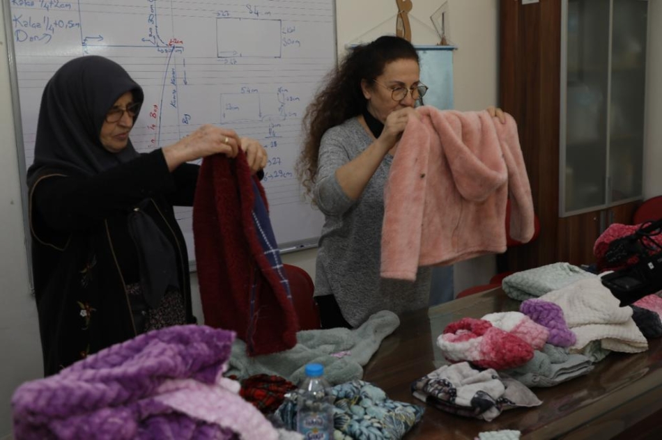 Kursiyer Hasibe Karakuş, “Felaketin ardından Büyükşehrimizin ORMEK kurslarında hemen çalışmaya başladık. Oradaki çocuklarımız için kışlık kumaşlardan kıyafetler dikmeye başladık. Elimizden geldiğince bu çalışmaları yapmaya devam ediyoruz. Bu çalışmalarla acılarını paylaşamayız belki ama onlara yardımcı olmaya, ısınmalarını sağlamaya çalışıyoruz”