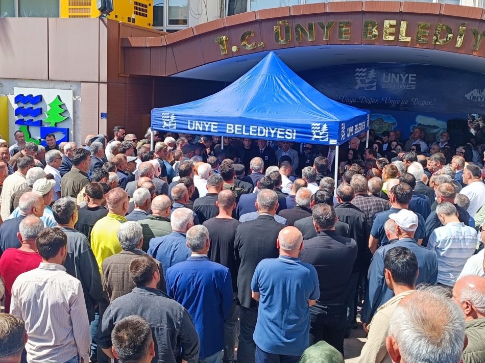 Orkun Müdür için Ünye Belediyesi önünde tören düzenlendi. Özgeçmişinin okunduğu törende konuşan Ünye Belediye Başkanı Hüseyin Tavlı, “Bugün çok sevdiğimiz kıymetli kardeşimizi ebedi istirahatgahına uğurlamak üzere bir araya toplandık. Orkun kardeşimiz devletini, vatanını, milletini seven ve aynı zamanda insan sevgisiyle, merhametle ve mütevazı kişiliğiyle şehre değer katan ve bu şehre hizmet eden çok kıymetli müstesna kardeşimizdi. Benimde, kalbimde içerimde yanımda müstesna kişiliğiyle çok güzel bir kardeşimizdi. Şehrimizin 570 Kilometrekaresinin her bir köşesinde izi ve emekleri bulunan kardeşimizin yapmış olduğu bu güzel hizmetler, inşallah ahiret yolculuğunda kendisine yoldaş olsun. Biz kendisinden gönülden razıydık, Allah’ım da ondan razı olsun. Allah’ım kendisine gani gani rahmetiyle muamele eylesin. Sevenlerine, başta kıymetli ailesine sabırlar diliyor, mesai arkadaşlarına sabırlar diliyorum. Hepimizin başı sağ olsun.” Dedi.