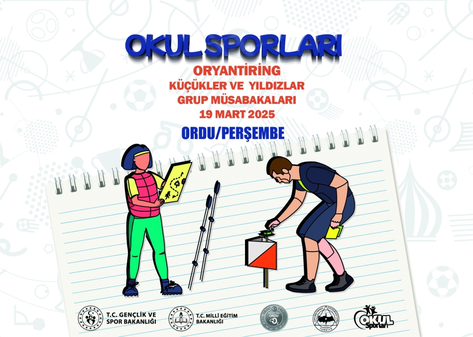 2024-2025 Eğitim ve Öğretim Yılı Okul Sporları Oryantiring Yıldızlar ve Küçükler (Kız-Erkek) Grup Müsabakaları, Ordu Gençlik ve Spor İl Müdürlüğü ev sahipliğinde gerçekleştirilecek. Türkiye’nin çeşitli illerinden başarılı sporcuların mücadele edeceği organizasyon, 19 Mart 2025 Çarşamba günü Perşembe ilçesinde düzenlenecek.