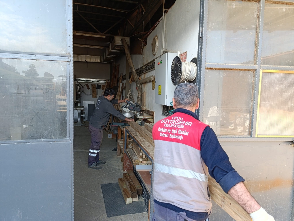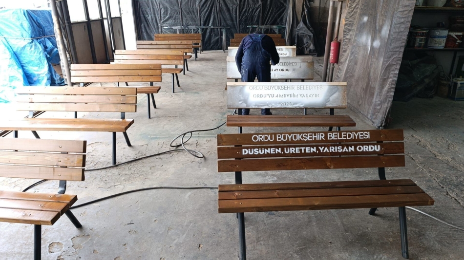 Ordu Büyükşehir Belediyesi, 19 ilçede bulunan park ve yeşil alanlardaki oturma bankları, basketbol potaları, aydınlatma direkleri, korkuluk ve kent estetiğine görsel katkı veren ahşap saksıları kendi atölyesinde üretiyor.