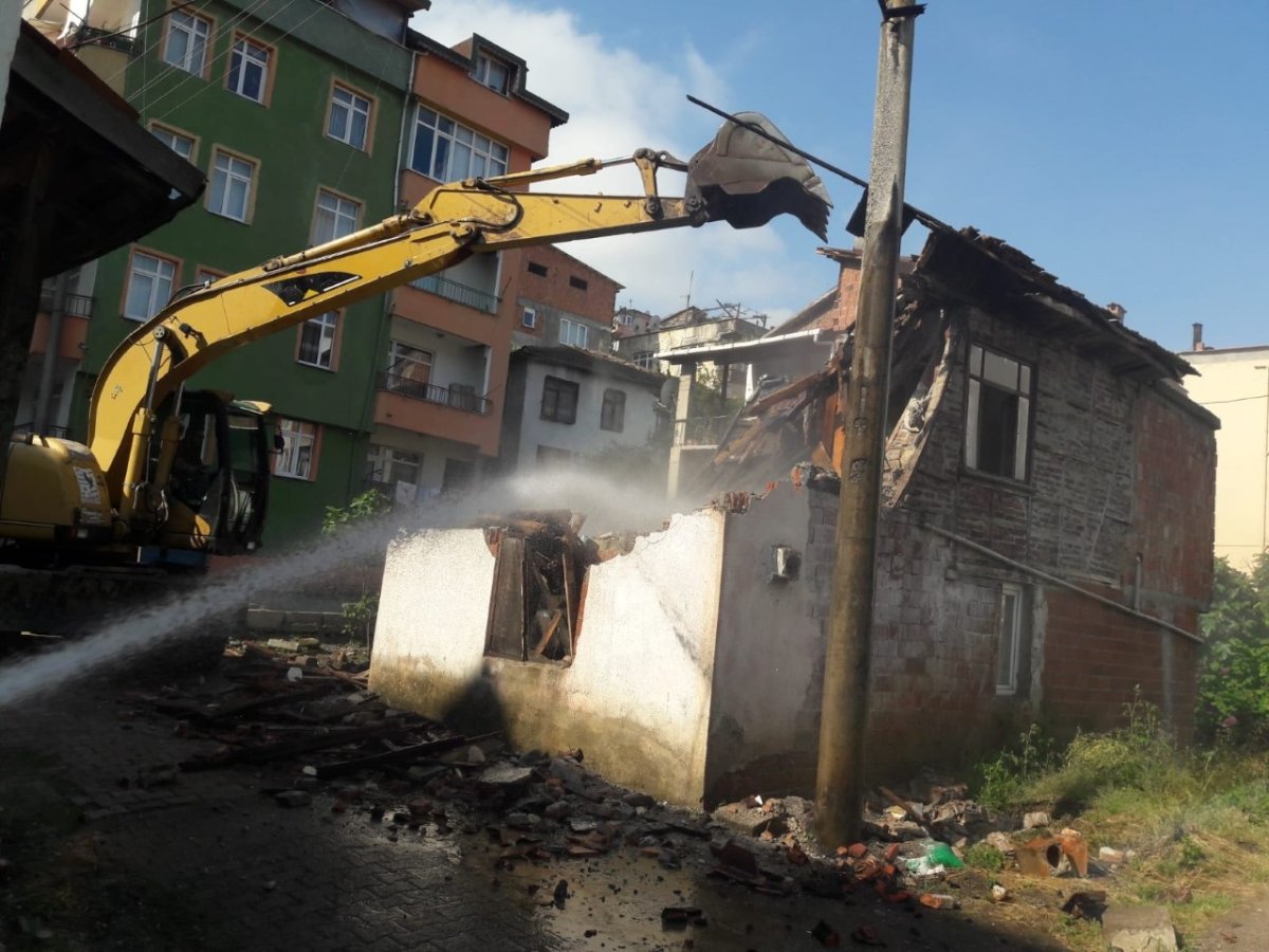 Ünye Belediyesi, tehlike oluşturan metruk binaların yıkımını sürdürüyor.