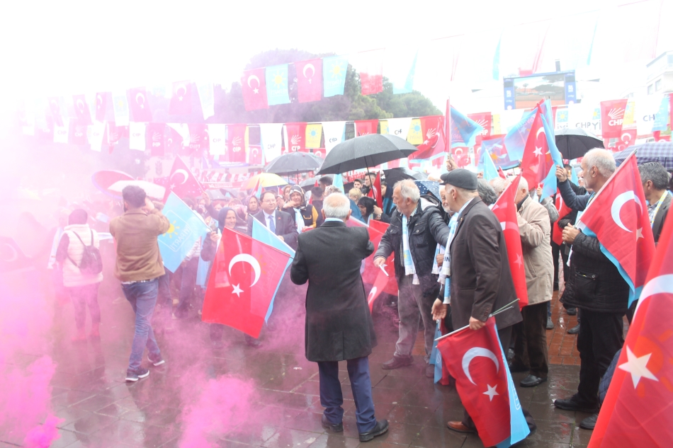 Mitingde konuşan Ünye Eski Belediye Başkanı Ahmet Arpacıoğlu da Ünye için yapmış oldukları hizmetin kaldığı yerden devam edeceğini söyleyerek, “10 yıl önce sizlerle beraberdik ama gönlümüz ayrı kalmadı 10 yıl sonra kalan hizmetlerin devamı için yine hep bir aradayız. İnşallah bıraktığımız yerde devam edeceğiz. Buralarda bu dönem hizmet etmek isteyen misafirlerimiz var. Zaman zaman buraya geliyorlar. Ne zaman geliyorlar ya 5 yılda bir ya 10 yıl da bir. Ama biz misafirperver bir milletiz. Bu gelenleri ağırlayıp ikramda bulunalım misafirperverlikte kusur etmeyelim. Ama sonra ağırlayalım ve uğurlayalım.” ifadelerini kullandı.