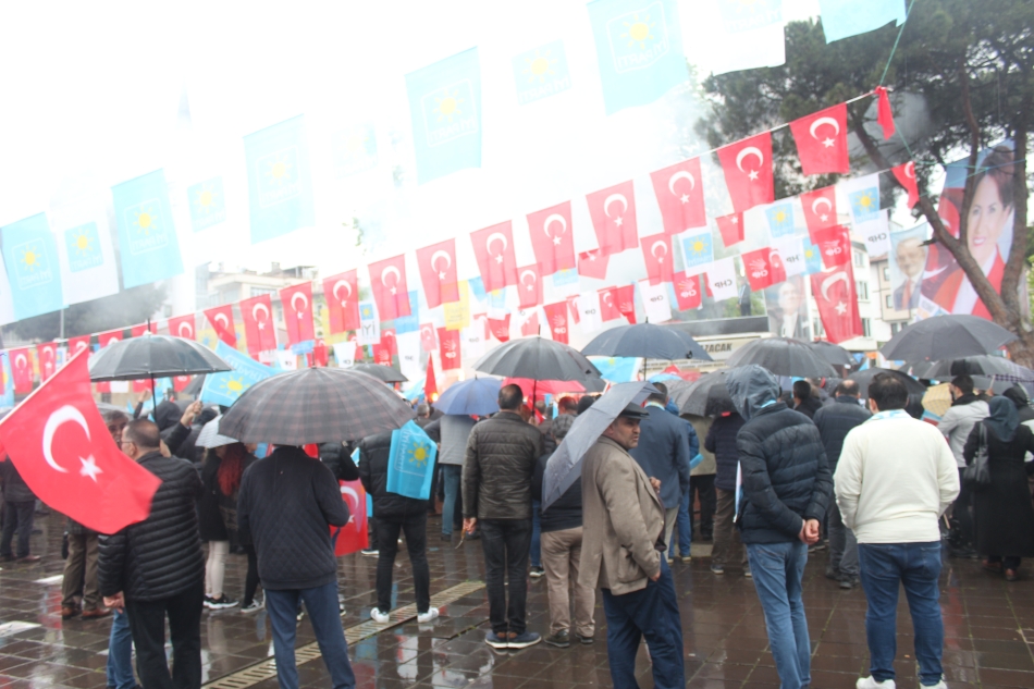 10 Mayıs Çarşamba günü yoğun yağış altında başlayan mitingde ilk olarak İYİ Parti Ünye İlçe Başkanı Av. İrfan Demir halka seslendi. Başkan Demir konuşmasında hürriyet ve özgürlük için mücadele ettiklerini söyleyerek iyi bir gelecek için İYİ Parti’ye destek istedi.