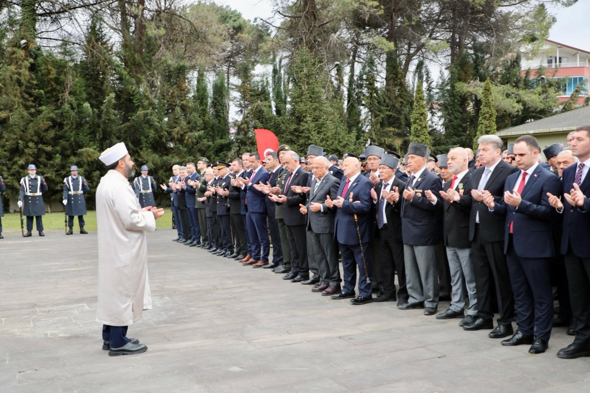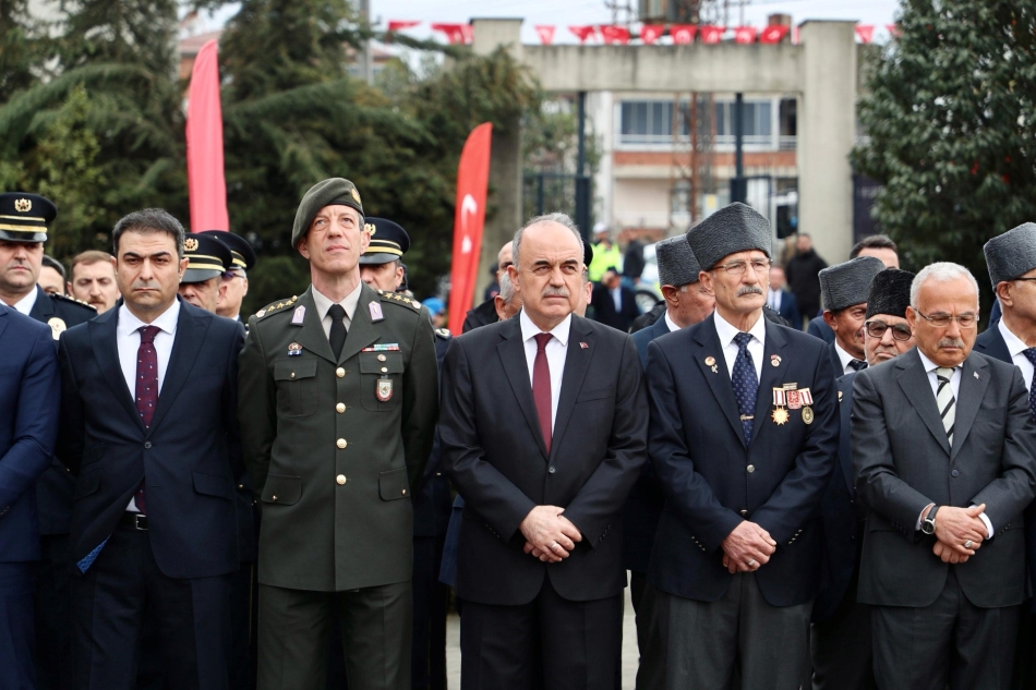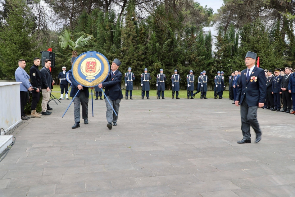 Garnizon Şehitliği’ndeki tören, çelenk sunma, saygı duruşunda bulunulması ve İstiklal Marşı’nın okunmasıyla başladı.