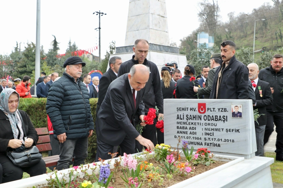 Ordu Şehitliğinde düzenlenen törene, Vali Muammer Erol, Garnizon Komutanı İkmal Albay Hakan Oktay, Ordu Büyükşehir Belediye Başkanı Dr. Mehmet Hilmi Güler, Cumhuriyet Başsavcısı Hasan Uçak, Ordu İdare Mahkemesi Başkanı Tayfur Sami Atılgan, ODÜ Rektörü Prof. Dr. Orhan Baş, Vali Yardımcıları Turgay Ergin, Burak Keser, Altınordu Kaymakamı Erkan Karahan, İl Emniyet Müdürü Ahmet Acar, İl Jandarma Komutanı Kıdemli Albay Sadi Akman, Altınordu Belediye Başkanı Ulaş Tepe, Ordu Askerlik Şubesi Başkanı Per. Asb. Kd. Bçvş. Gökhan Ayhan, Türkiye Harp Malulü Gaziler Şehit Dul ve Yetimleri Derneği Ordu Şube Başkanı Nurettin Korkmaz, Türkiye Muharip Gaziler Derneği Ordu Şube Başkanı Mehmet Ali Gümüşkaya, Polis Şehit Aileleri ve Gazileri Derneği Başkanı Şenel Şahin, daire müdürleri, siyasi parti, meslek ve sivil toplum kuruluş temsilcileri, şehit aileleri ve yakınları katıldı.