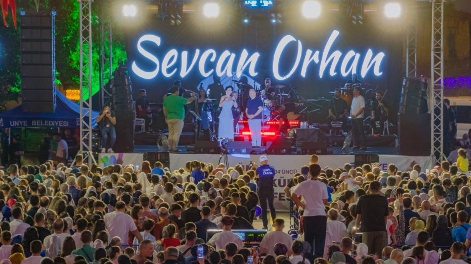 Ünye 34. Uluslararası Kültür, Sanat ve Turizm Festivali tüm coşkusuyla devam ederken, dün akşam sahneye çıkan Türk Halk Müziği’nin sevilen ismi Sevcan Orhan, Cumhuriyet Meydanı’nı dolduran binlerce kişiye müzik dolu unutulmaz bir gece yaşattı.