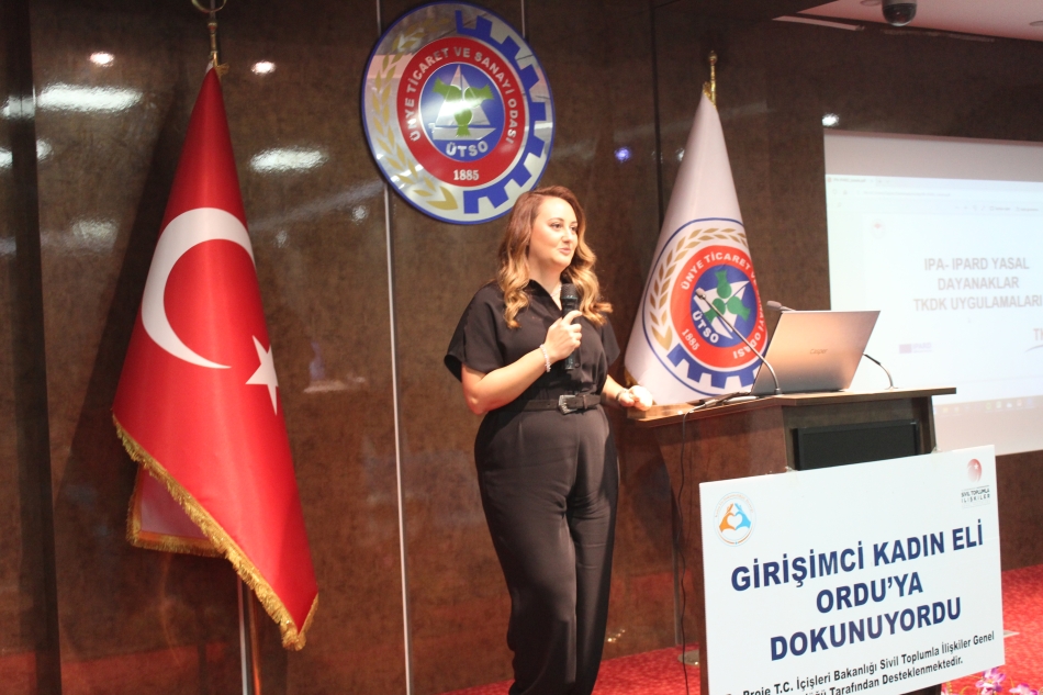 Konferansta sosyal girişimciliğin en önemli parametrelerinden olan işin mali ve finansal kısmı olan ‘Hibe Fon Kaynakları’ bölümünün sunumunu gerçekleştiren İncilay Toker ise, Ünye’de olmaktan mutlu olduğunu, kendisinin de Samsun Bafralı olduğunu, annesinin Aybastılı olduğunu söyleyerek başladığı sunumunda, hibe projelerindeki hassas noktaları, hangi projelerin hangi kuruluşlardan ‘olur’ alabileceğini anlattı. Sunumunda aktif olarak devam ettirdiği projelerden de örnek veren İncilay Toker, Kadın Eli DokunuyORDU Derneği’nin faaliyetlerini desteklediğini ve dernek aracılığıyla kendisine ulaşacak girişimci kadınlara da seve seve yardımcı olacağını sözlerine ekledi.