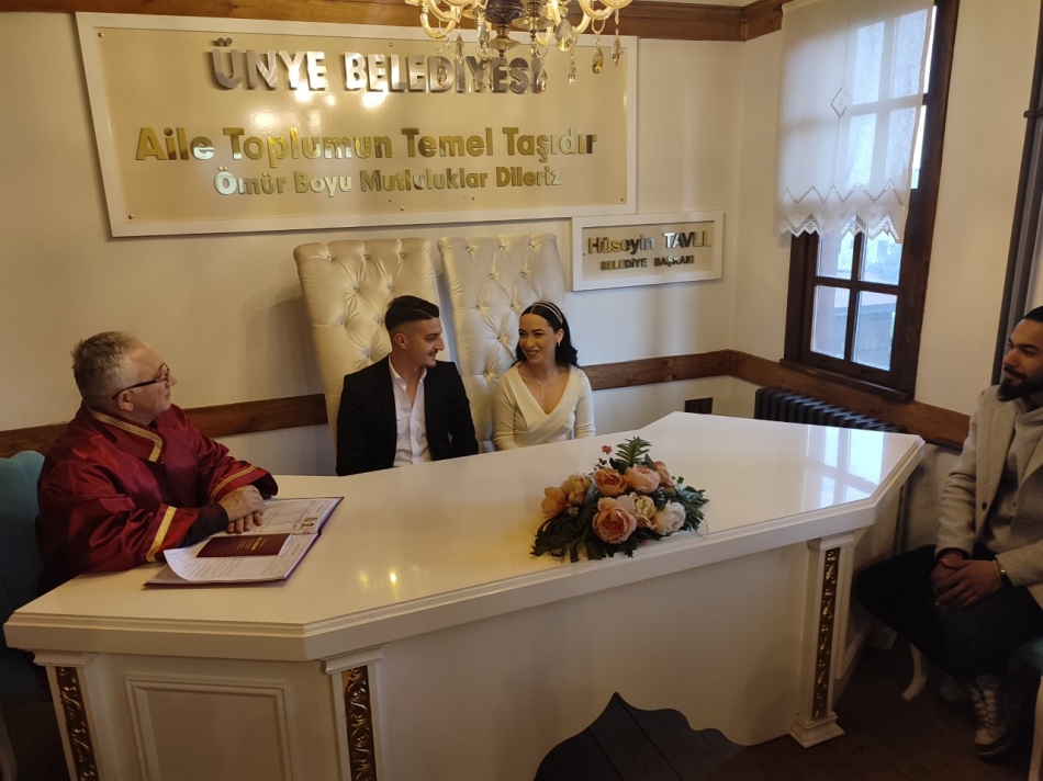 Ünye Belediyesi nikâh işlemlerini Tarihi Hüseyin Sabri Kadı Konağı’nda yapıyor. Daha önce belediye hizmet binasında yer alan evlendirme dairesi 13 Şubat 2023 itibariyle Hüseyin Sabri Kadı Konağı’na taşınırken, hayatlarını birleştiren çiftlerin mutluluğuna artık yakınlarının yanı sıra tarihi mekân da şahitlik edecek.