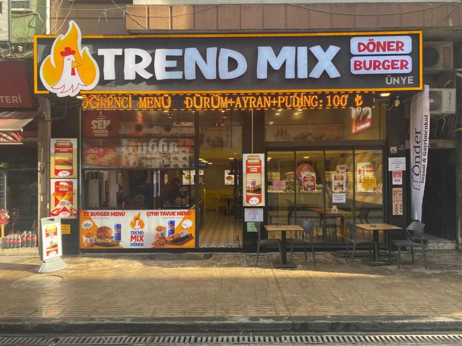 Ünye Kaledere Mahallesi Hükümet Caddesi ve Fatsa Mustafa Kemal Paşa Mahallesi Eski Hal Sokak’ta başarı ile faaliyetlerini sürdüren Trend Mix Döner Burger, klasik döner lezzetini modern dokunuşlarla buluşturan yeni nesil bir lezzet durağı! Özellikle tavuk zehirlenmeleri haberlerini çok sıklıkla duymaya başladığımız günlerde işletme siz ve çocuklarınızın güvenle yemek yiyebileceği bir mekan.