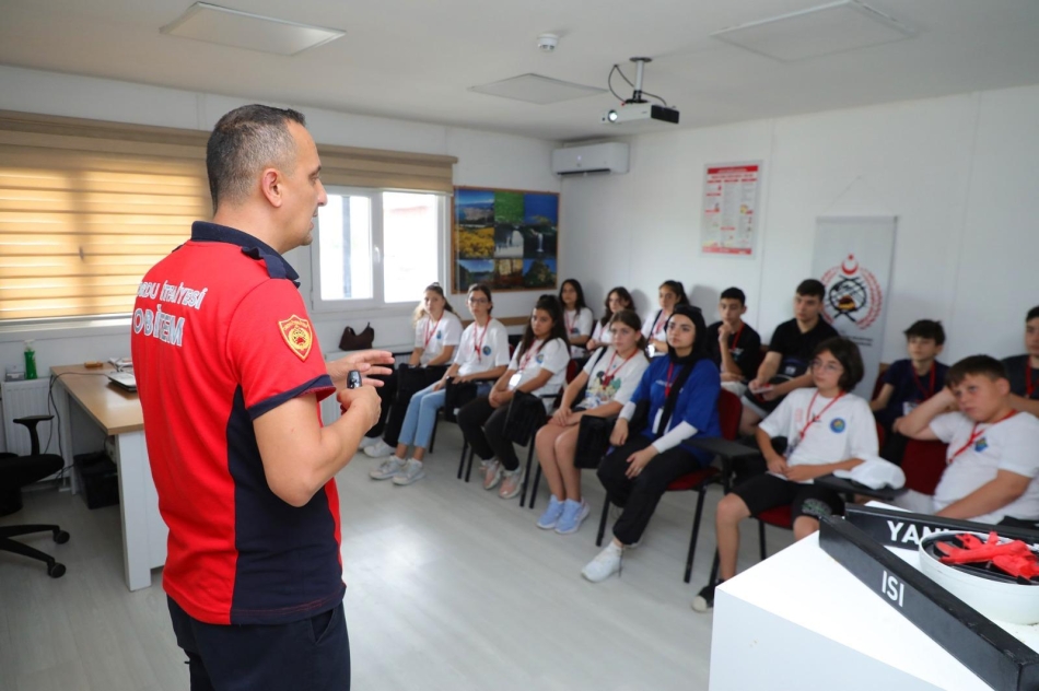 36 ortaokul öğrencisinin katıldığı eğitimde, OBİTEM eğitmenleri tarafından itfaiye ekipman bilgisi, yangın dinamikleri, LPG, doğalgaz ve akaryakıt kaynaklı yangınlar hakkında bilgilendirmede bulunuldu.