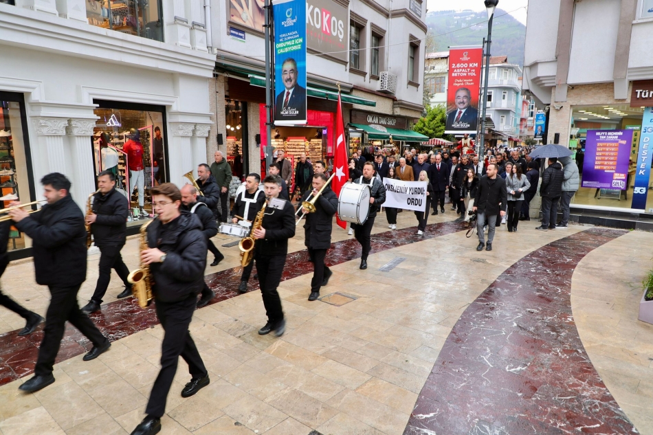 Vali Muammer Erol, protokol üyeleri, öğretmenler, öğrenciler ve vatandaşlardan oluşan kortej, Ordu Büyükşehir Belediyesi Kent Orkestrası’nın ezgileri eşliğinde Sırrıpaşa ve Süleyman Felek caddelerini takiben Köprübaşı Ceren Özdemir Meydanı’na kadar yürüdü.