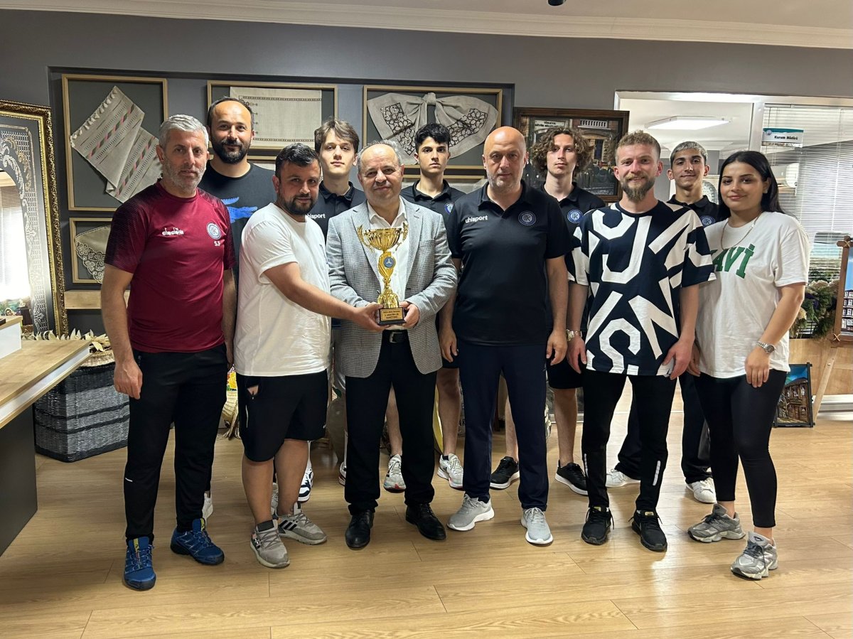 Mürüvvet Vidinli Halk Eğitim Merkezi Müdürü Mustafa Bilgin’i şampiyon olarak 1. Amatör lige yükselen takımlarının genç oyuncuları ve antrenörleri ile birlikte ziyaret ederek teşekkürlerini sunan heyette Başkan Metin Tamtürk de yer aldı.