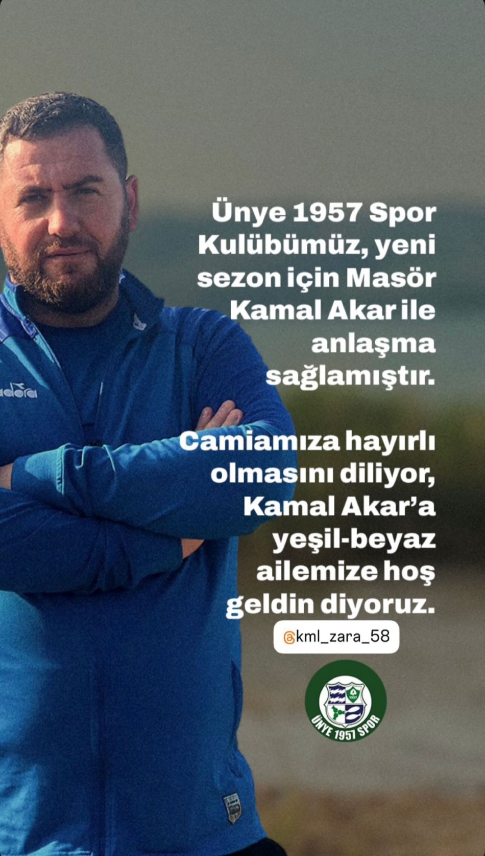 Masör Kemal Akar, geçtiğimiz sezon da Ünye 1957 Spor'da başarıyla hizmet vermişti.