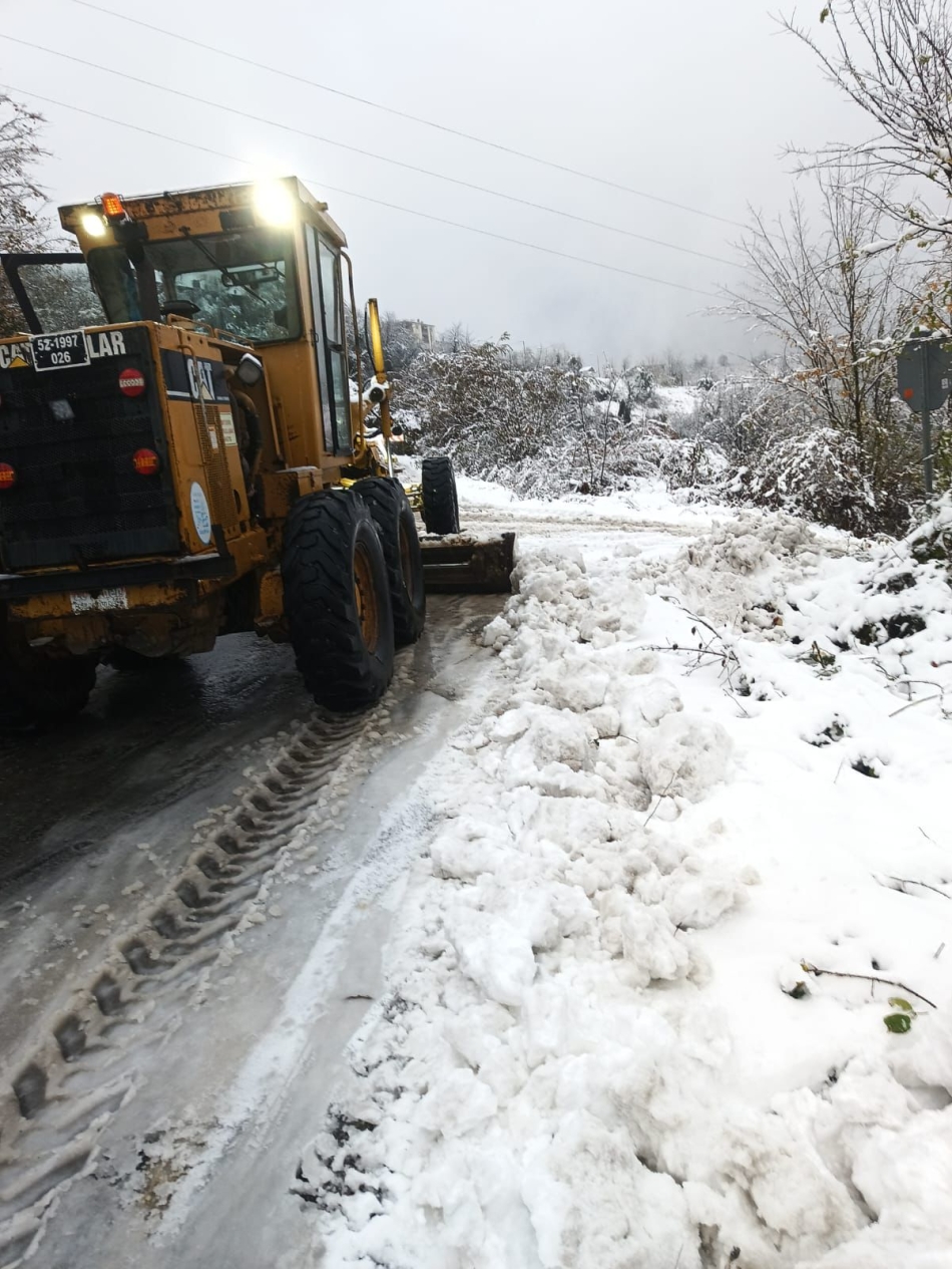 Ünye’de sahilde sağanak yağmur, orta ve yüksek kesimde kar yağışlarının görüldüğü hafta sonu, mahalle yolları ulaşıma açık tutulurken, Ünye Belediyesi ekipleri karla mücadele çalışmalarını aralıksız sürdürdü.
