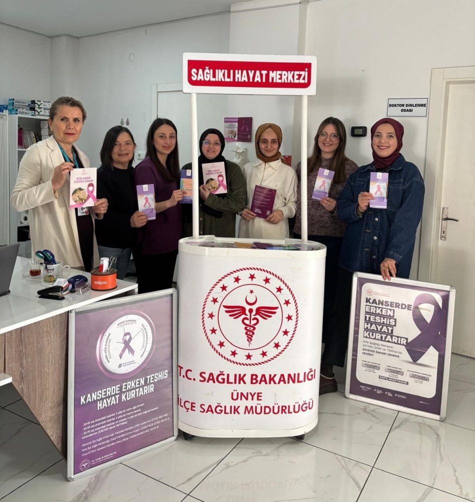 Ünye İlçe Sağlık Müdürlüğü ekiplerince düzenlenen eğitimlerde, Kanser riskini artıran faktörler, kanserde erken teşhisin önemi, sağlıklı yaşam alışkanlıkları, kanserden koruyucu önlemlere değinilerek kanser tarama programları hakkında bilgiler paylaşıldı.