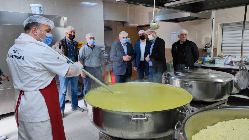 Yemeklerin hazırlandığı mutfağı ziyaret eden Ünye Belediye Başkanı Hüseyin Tavlı, özellikle malzemeden kaçınmadıklarını ve Ramazan ayında vatandaşlara restoran kalitesinde yemek sunduklarını belirtti. Başkan Tavlı, “Gönül soframızda pandemiden sonra evden eve değil, ortak sofralarda buluştuğumuz bir döneme girmenin sevincini yaşıyoruz. Pandemi döneminde tesislerimizde ürettiğimiz yemekleri vatandaşlarımızın evlerine ulaştırmıştık. Bu yıl Gönül Sofrası adını verdiğimiz iftar çadırında geleneğimizi sürdürüyoruz. Ayrıca yaşlılığı ya da hastalıkları nedeniyle evlerinden çıkmayan vatandaşlarımızın da yine hanelerine sıcak yemek ulaştırmaya devam ediyoruz. Mutfağımızda hazırlanan ürünleri düzenli olarak numuneleri alınarak kontrolden geçirilmektedir” dedi.