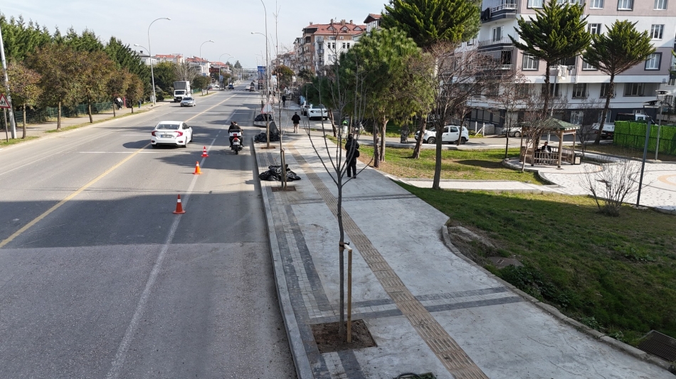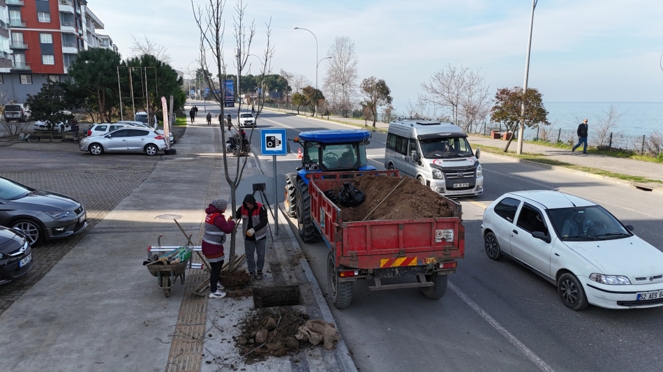 Ünye’de kaldırımları modern hale getiren Büyükşehir Belediyesi, bu güzergahları ağaçlandırarak daha yeşil bir kent inşa ediyor.