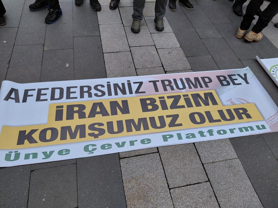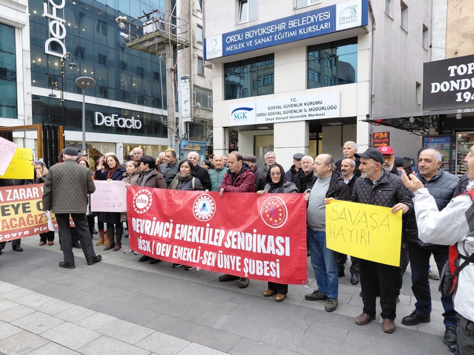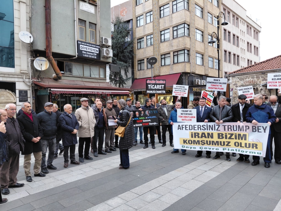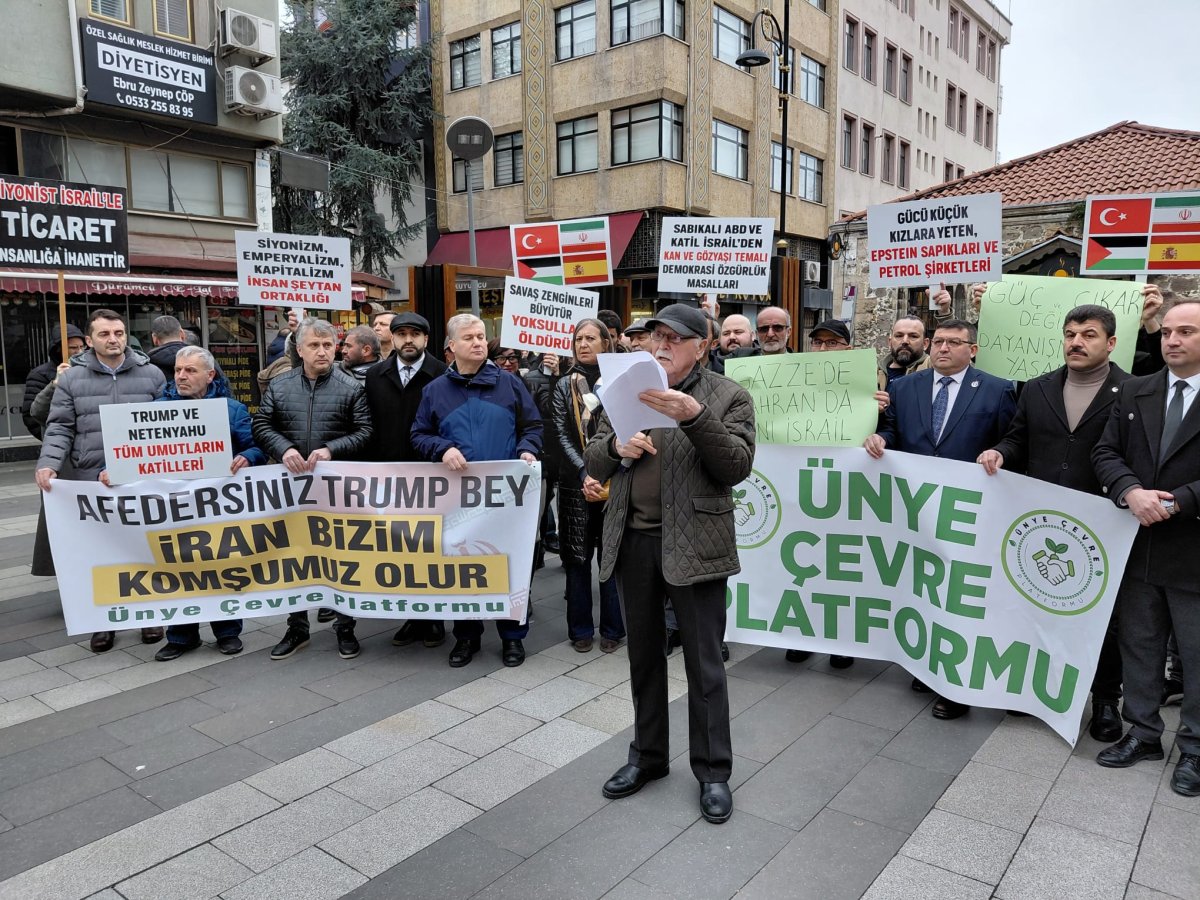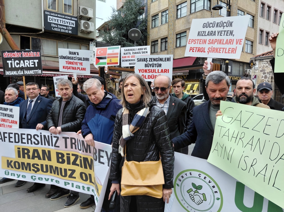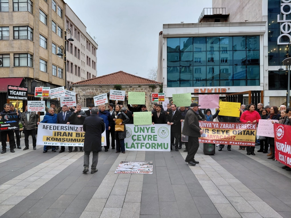 Ünye Çevre Platformu ve bileşenleri, Ünye Döner Çeşme Meydanı’nda düzenlediği basın açıklamasında ““Türkiye ve İran Birlikte Barışı Büyütelim”, “Savaşa Hayır!”, “Barış Hemen Şimdi!”, “ABD Bombardımanı İran’a Özgürlük Getirmez!” mesajları ile “savaşa hayır” dedi.