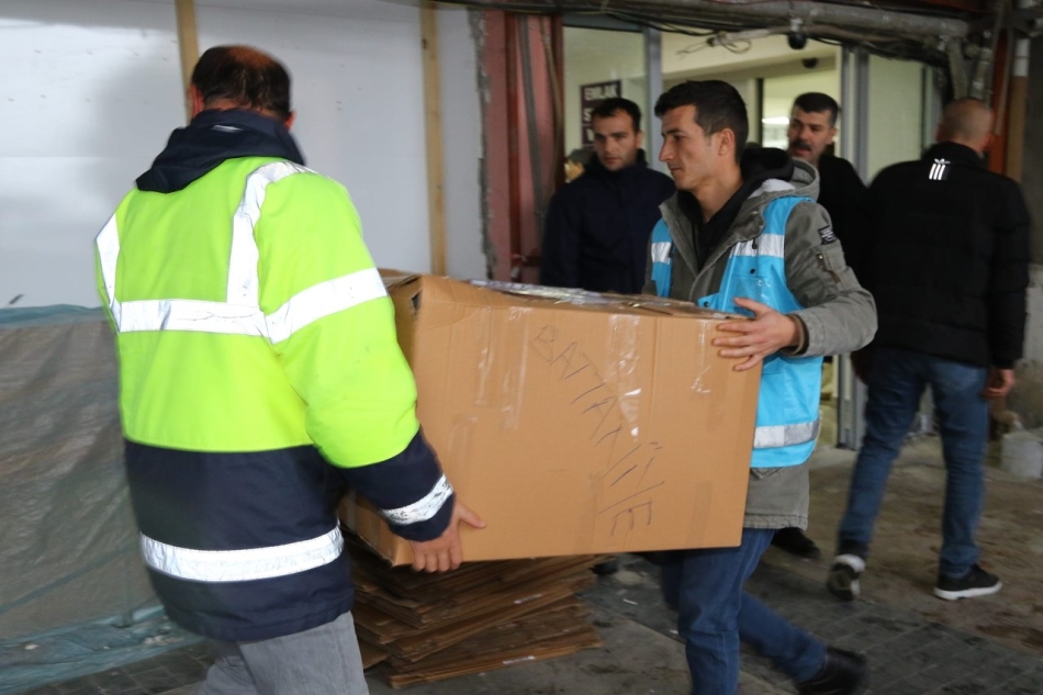 Ünye Belediyesi girişinde toplanılan yardımlar kolilere ayrıştırılarak önce Ordu merkeze ardından da tırlarla deprem bölgesine gönderilecek.