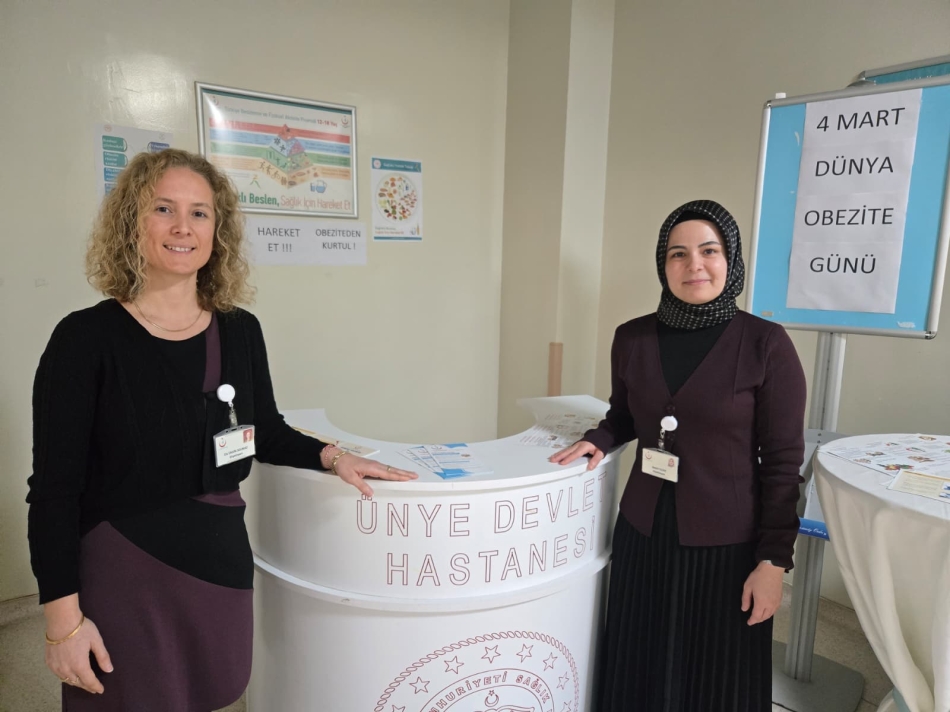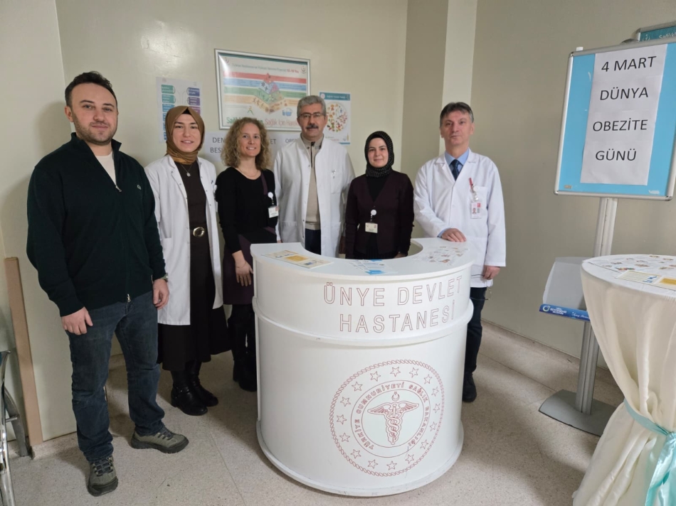 4 Mart Dünya Obezite Günü kapsamında Ünye Devlet Hastanesi’nde bilgilendirme standı açıldı. Hastanede görev yapan diyetisyenler tarafından kurulan stantta, hastalara ve ziyaretçilere obeziteyle ilgili çeşitli bilgiler verildi.