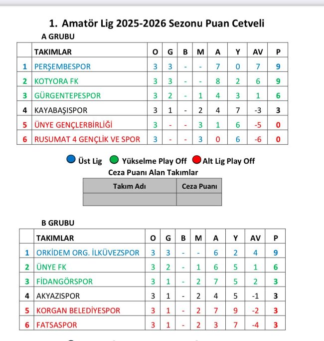 1. Amatör Lig’in 3. Haftasında oynanan müsabakalarda şu sonuçlar alındı;