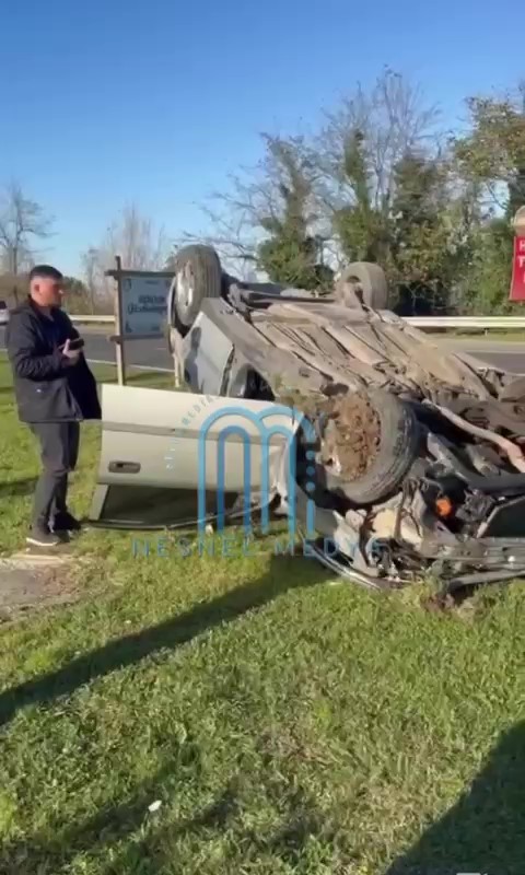 Kazada otomobillerden biri takla atarak orta refüje çıktı.