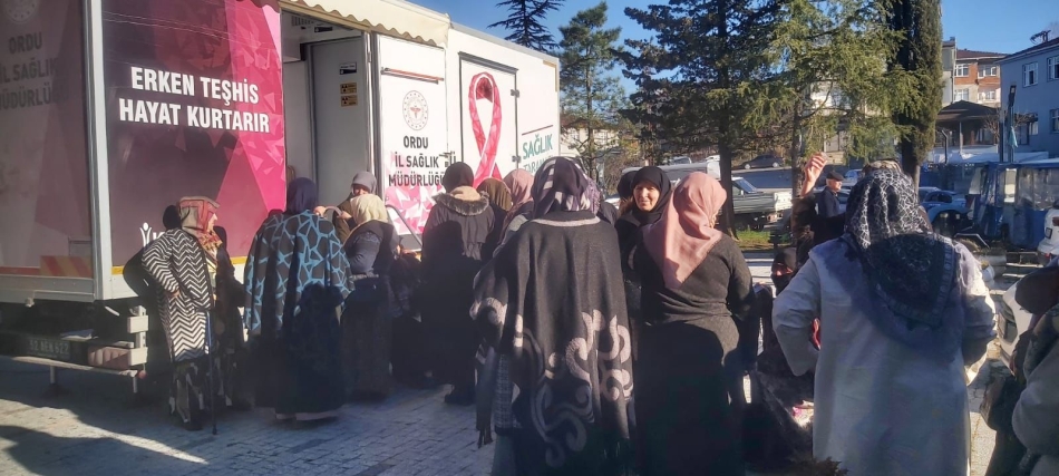 Mamografi çekimi için Ordu İl Sağlık Müdürlüğü tarafından tahsis edilen Mobil Kanser Tarama aracıyla İlçe Sağlık Müdürlüğünde görev yapan sağlık personellerimiz nezaretinde kadınların Mamografi çekimleri yapıldı.