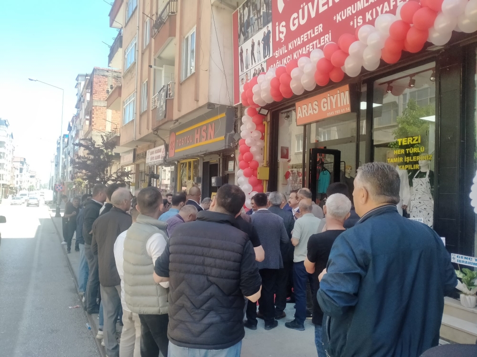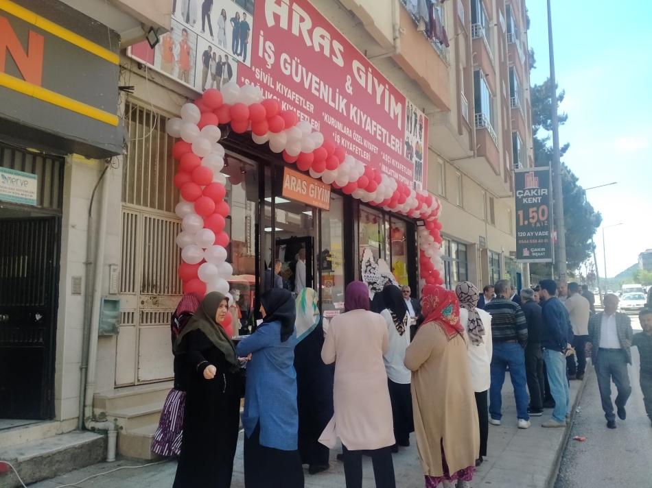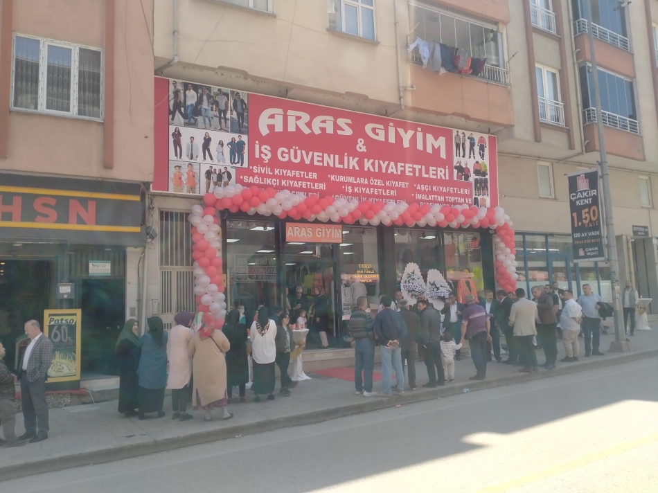 İşletmeciliğini Mehmet, Ömer ve İsmail Abasız'ın yaptığı Aras Giyim ve İş Kıyafetleri yoğun bir katılımla açıldı.