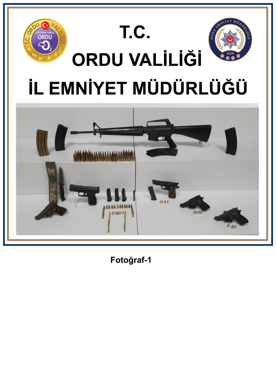 Yapılan aramalarda; 7 adet tabanca, 2 adet tüfek, 1 adet M16 tüfek, 199 adet değişik ebatlarda fişek, 3 adet M16 tüfek şarjörü, 1 adet kalaşnikof tüfek şarjörü, 7 adet tabanca şarjörü ele geçirildi.