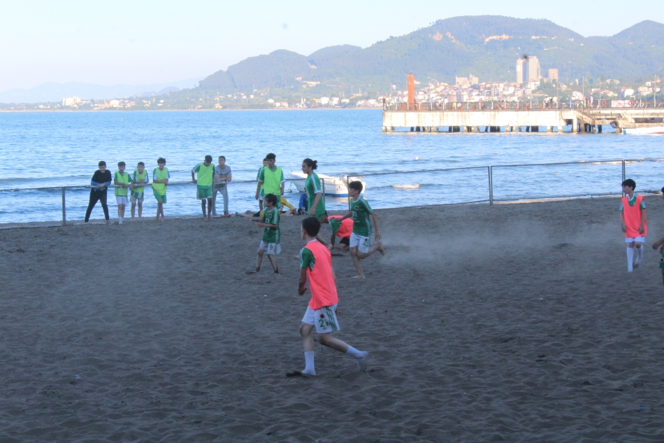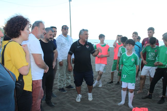 Futbol oynayan çocuklar da Yalı Kahvesi projesine tepki göstererek Ünye’nin sahillerinin doğal kalmasını ifade ettiler.