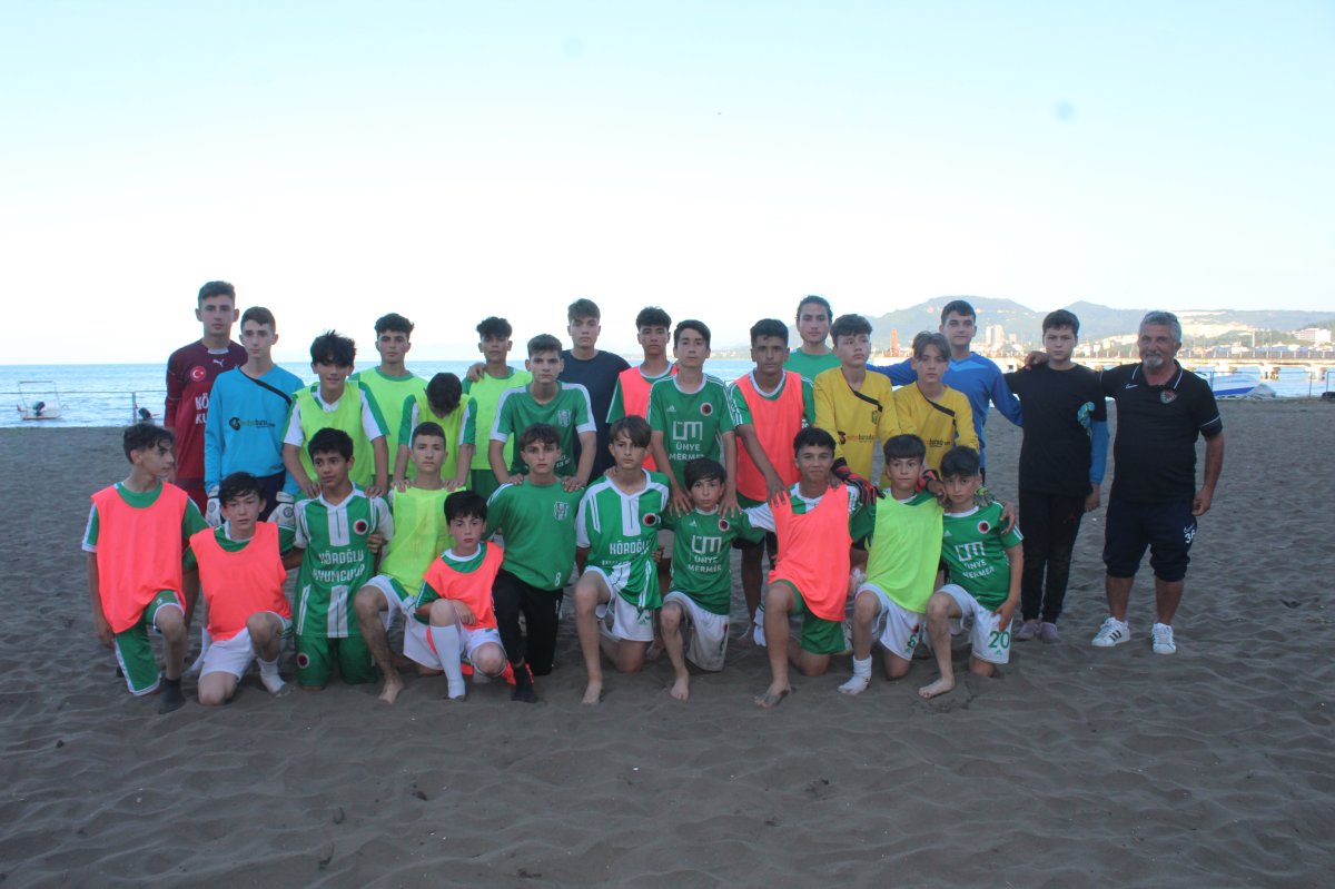 Bu çocukların içinde ileriye dönük başarılı oyuncular var. Bu çocuklardan Ünye birincisi de var. Buradan dört tane oyuncuyu Hatayspor'a gönderdik. Geleceğe umutla bakıyoruz. Bu arkadaşlar Hatayspor'a gittiler denendiler ve karar verecekler bunlar için Süper Lig takımı. Biz gençlerimizi sıfırdan aldık. Bir de büyüklerimiz var yirmi yaş üzeri. Bu sene maçı on beşte on beş yaptık. Üçüncü ligin kapısından döndü takım. Bir şanssızlık oldu kaybettik final giderken. Toplamda yüz elli tane lisanslı futbolcumuz var.