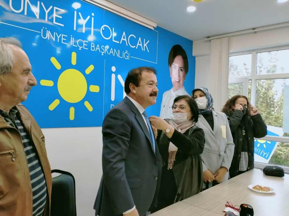Geçtiğimiz hafta Ankara’da, İYİ Parti Genel Başkanı Meral Akşener tarafından Meclis’teki grup toplantısında parti rozeti takılarak İYİ Parti’ye katılan Ünye Eski Belediye Başkanı Ahmet Arpacıoğlu, bugün de İYİ Parti İlçe Başkanlığı’nda düzenlenen törenle parti rozetini İlçe Başkanı Feryal Çuhacı’dan aldı.