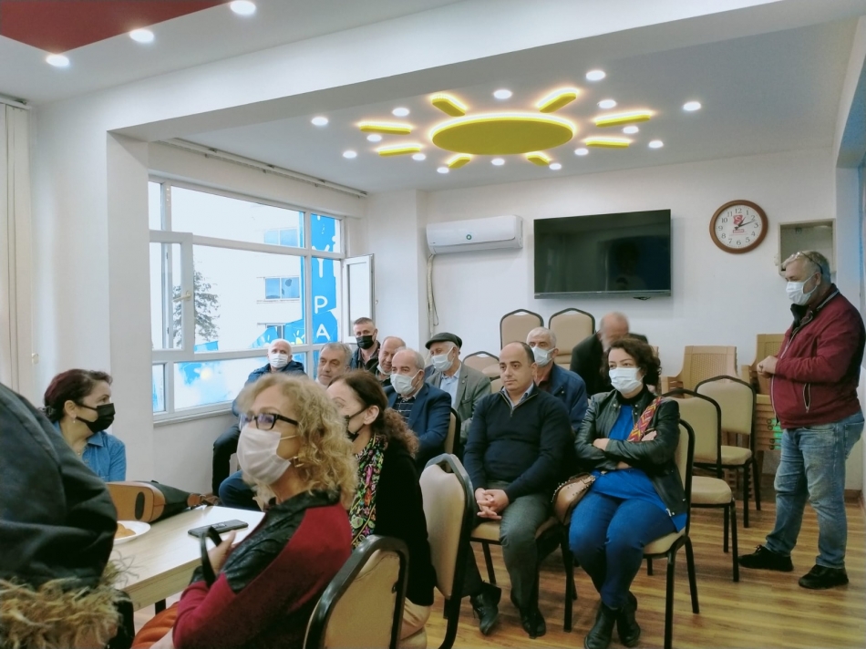 Eski Belediye Başkanı Arpacıoğlu’nun konuşması İlçe Başkanlığı’nda hazır bulunan parti yöneticileri ve üyeleri tarafından sık sık alkışlarla kesildi.