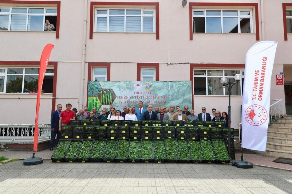 Tarım ve Orman Bakanlığı Bitkisel Üretim Genel Müdürlüğünün destekleriyle uygulanan “Ordu İli Sebze Yetiştiriciliğinin Geliştirilmesi Projesi" kapsamında temin edilen fidelerin dağıtımı törenine Vali Muammer Erol, İl Tarım ve Orman Müdürü Kemal Yılmaz ve üreticiler katıldı.