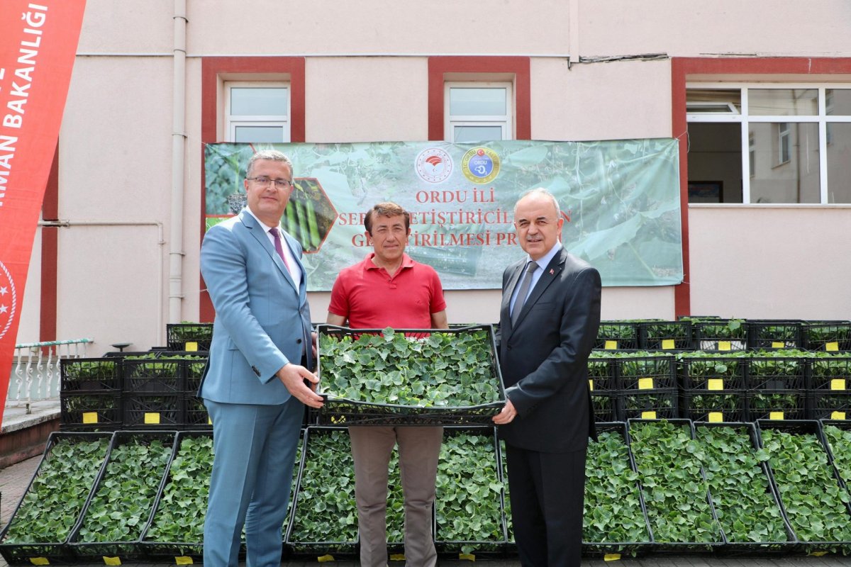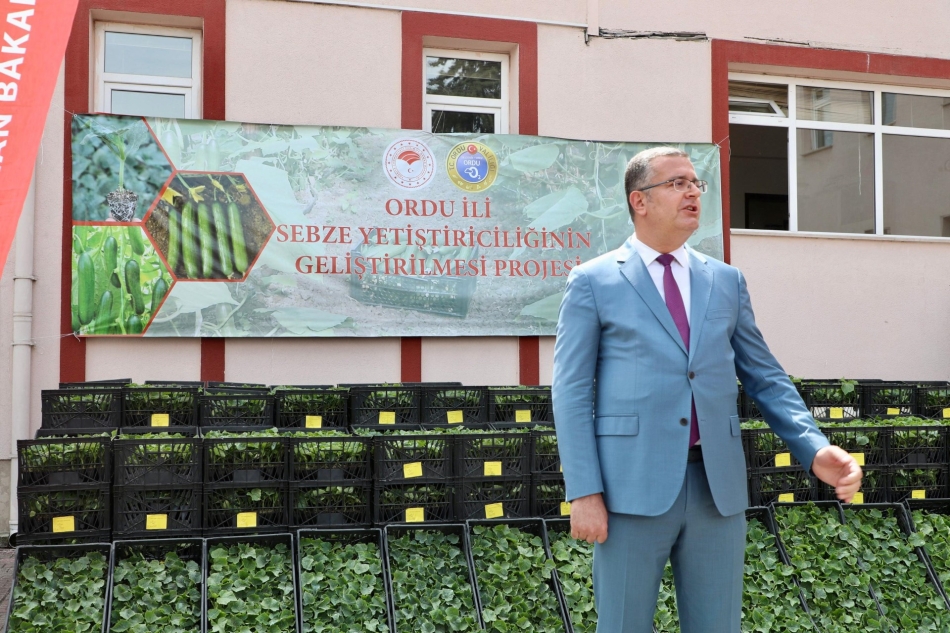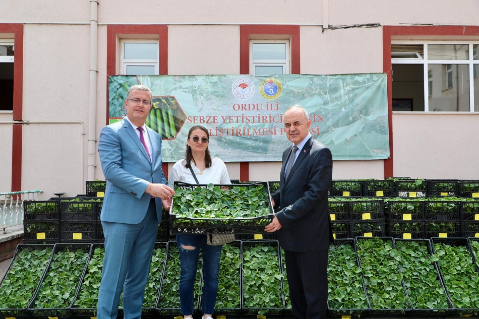 Ordu Valisi Muammer Erol, “Ordu İli Sebze Yetiştiriciliğinin Geliştirilmesi Projesi" kapsamında temin edilen hıyar fidesi dağıtım törenine katıldı.