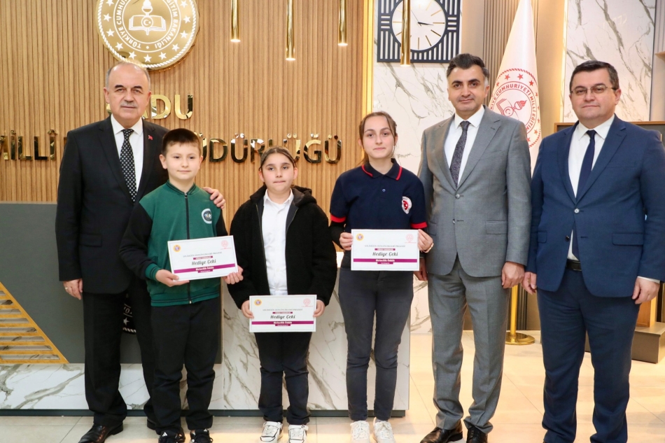 Vali Muammer Erol, sergi sonrası “Dilimizin Zenginlikleri” Projesi Kapsamında yapılmış olan ‘23 Nisan Video Yarışması’ ile ‘Mısra ve Beyit Ezberleme Video Yarışması’nda birinci olan Gölköy Şehit Toki Hikmet Mert İlkokulu öğrencisi Alperen Günay, Korgan Şehit Emrah Sapa İmam Hatip Ortaokulu öğrencisi Ecrin Sena Halıcı, Akkuş Salman Anadolu Lisesi öğrencisi Neşe Demir’e ödüllerini vererek tebrik etti ve başarı dileğinde bulundu.
