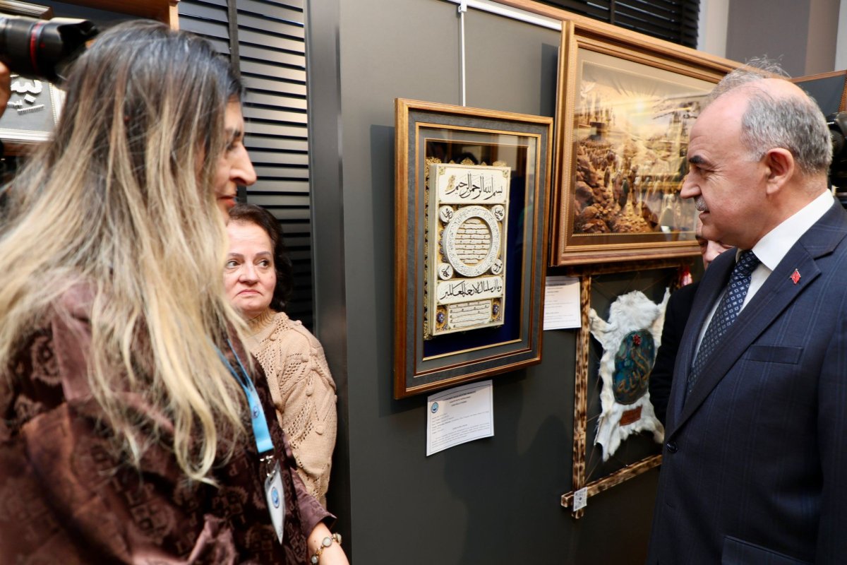Daha sonra, Mevlid-i Nebi’nin 1500. yılı anısına, Altınordu Halk Eğitimi Merkezi , Ordu Olgunlaşma Enstitüsü, Fatsa Halk Eğitimi Merkezi ile Ünye Mürüvvet Vidinli Halk Eğitimi Merkezi işbirliğiyle hazırlanan hat, tezhip, ebru ve atölye çalışmalarından oluşan “Sanatın Diliyle Değerlerimiz” sergisinin açılış kurdelesi, Vali Muammer Erol, programa katılan protokol mensupları tarafından kesildi.